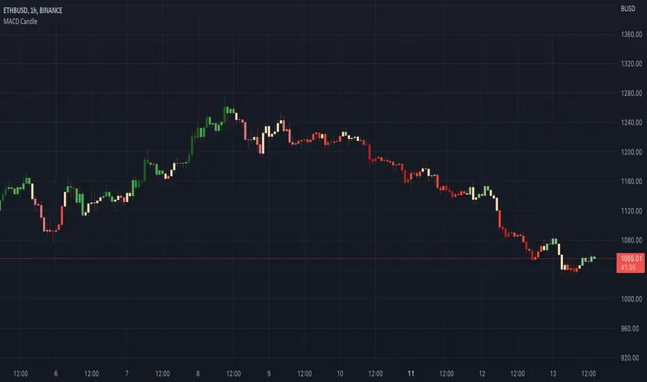 Instead of viewing MACD from a separate chart (histogram), this indicator will plot a candle based on the MACD value. It is easy to summarize trends and make your technical analysis charting less complex.