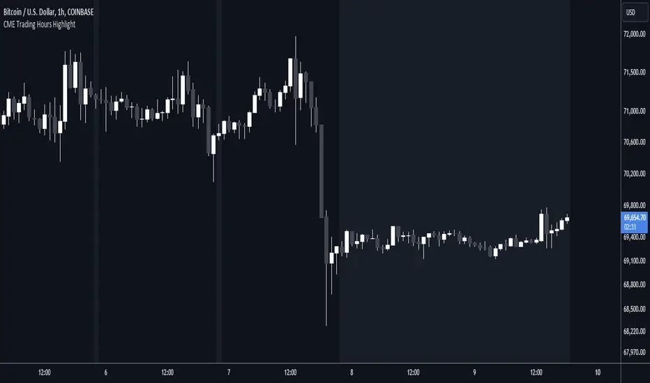 You might want to display these hours if you trade the same asset on a different exchange. For example, you might want to overlay the CME BTC1! hours on a Coinbase BTC chart to see how trading in these futures contracts affects the market.