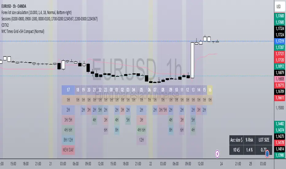 Marca las horas de apertura de las velas en los diferentes timeframes.Marks the opening hours of the candles on the different timeframes.