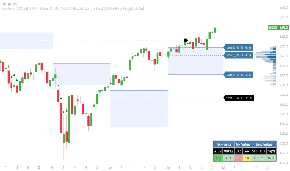 For example, in the chart above, VA(m) - ABOVE indicates a monthly value area and price is above the VAH.