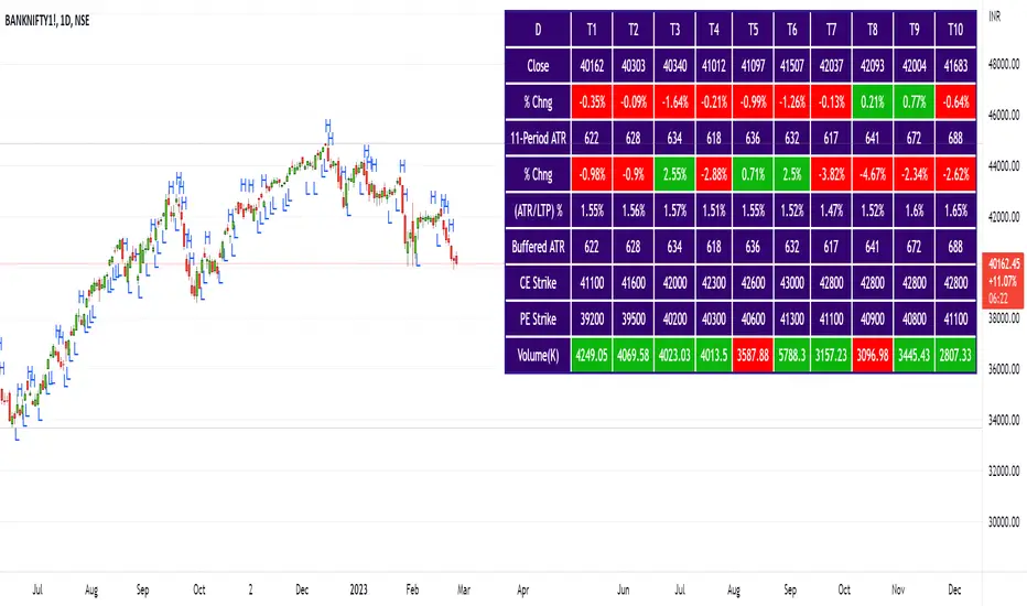 Artharjan - ATR Dashboard indicator is designed to plot a dashboard of Average True Range for past 10 candles on the chart. It calculates and shows what percentage of the closing price the ATR is for the selected timeframe.