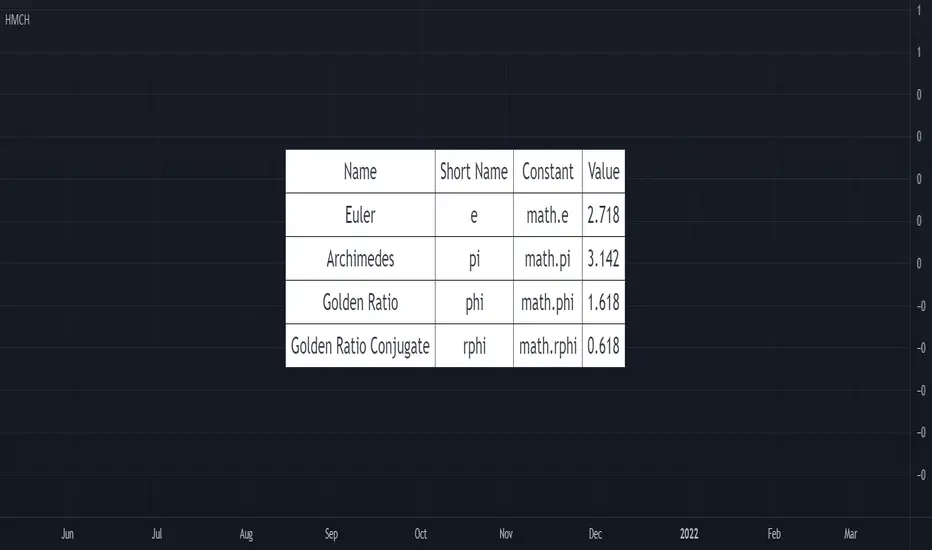 This indicator is to show constant in table using built-in math name space, coded in latest Pine Script version 5.