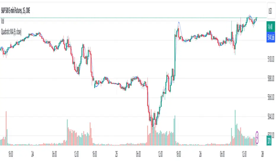 The Quadratic Moving Average (QMA) is an advanced smoothing indicator that provides a smoother and more responsive moving average by applying the Weighted Moving Average (WMA) methodology in a unique, multi-layered approach. This indicator is especially useful for identifying trends in highly volatile markets where data points vary significantly.