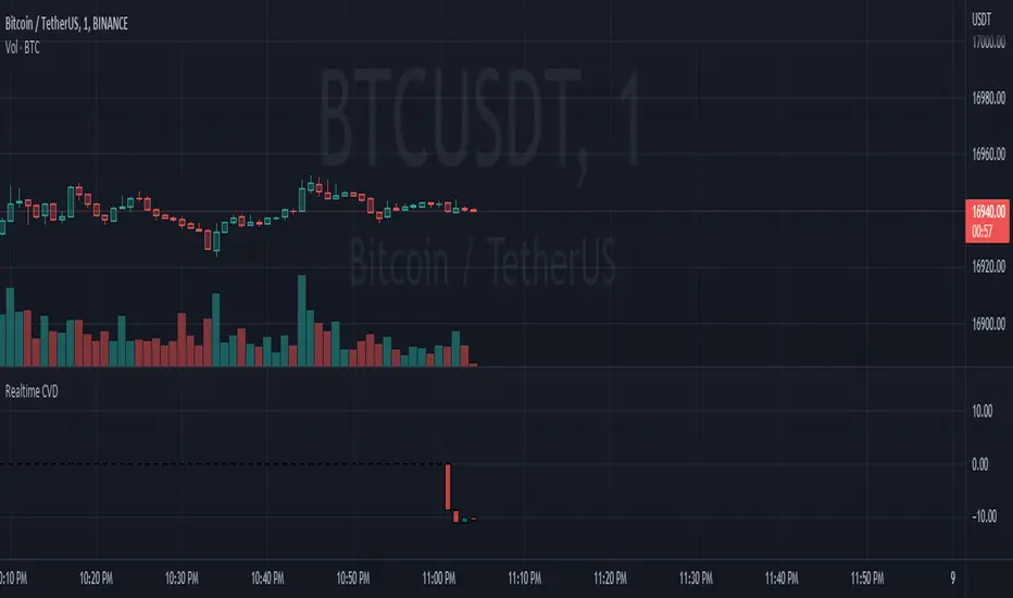 Made tick identification based on volume and not price. Changed display settings, wicks invisible as it is not actual high and low of cvd but just the buying and selling pressure.Skrip open-source
