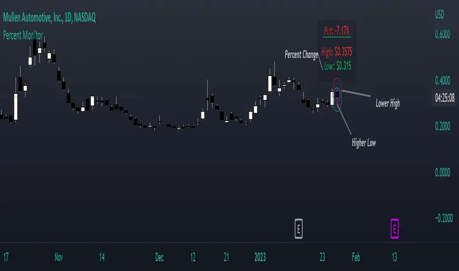 • If the current price is lower than the previous low the price figure will turn red.