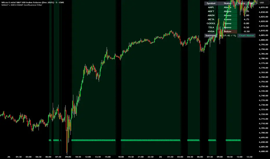 This tool is a high-precision regime filter built for traders who want to avoid chop, trade only during clean directional flows, and align entries with the true leaders of the U.S. equity market — the MAG7.