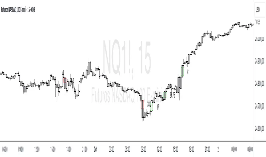 Muestra FVG alcista y bajista con etiqueta tamaño en puntos del FVG