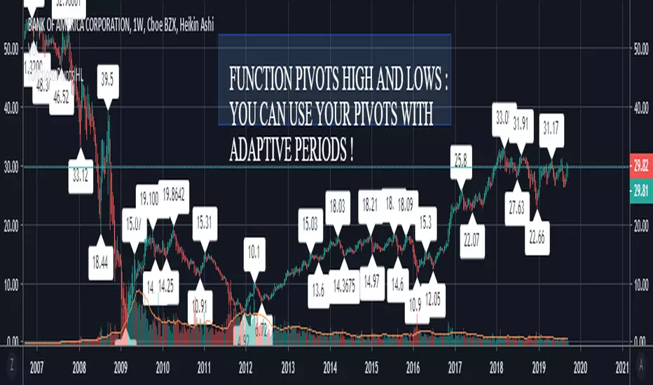WARNING: The toil of this script is not mine. In order to avoid disrespect for work, I deleted some extensions only pure pivots , that is, only the information this script needed. I liked the fact that high and low pivots were in one function. I found this command by chance on stackoverflow. I don't know the authors and the nicknames because they are the stackoverflow nicknames. I hope it will help your adaptive periods. Finally, the length of the pivot must be at least 3 to be available.If the author reaches me, I will give his/her Tradingview name as a reference.