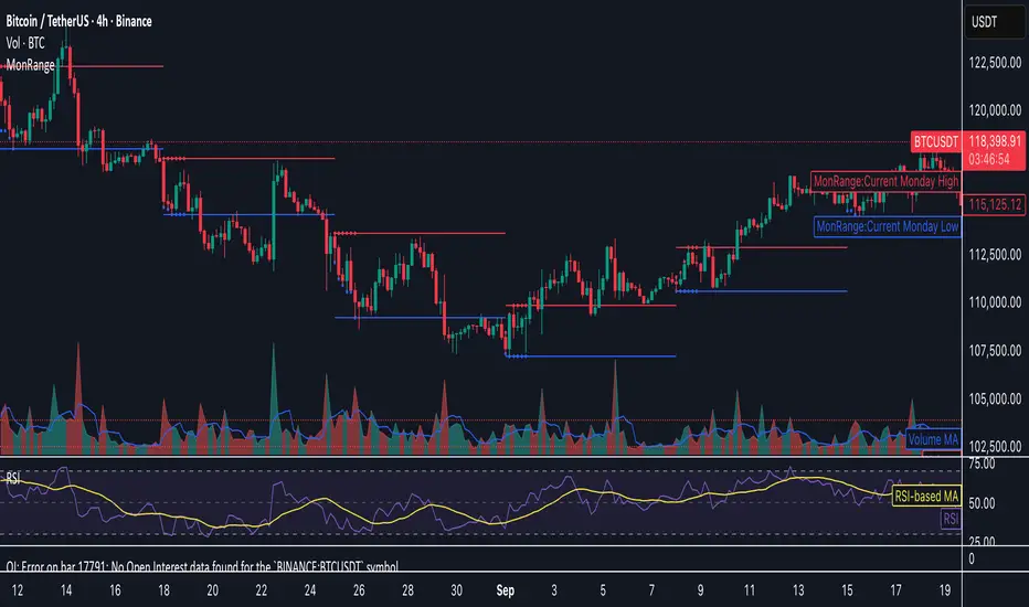 Marks high and lows of the Monday for the full week. Amount of weeks and color can be adjusted.