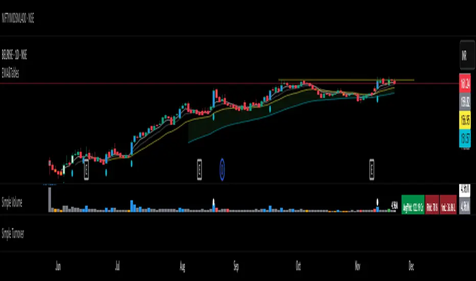This is a multiple EMA setup, EMA 5 to EMA 200. This is having color band with 20 and 50 EMA