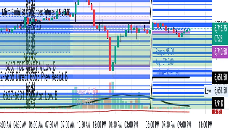 This indicator allows one to paste price levels from an outside source and draws lines at those levels. A level can be a line (1 price level) or a price range. It can also be identifies as a Major Level or a minor level. Individual notes can be entered at each level by placing the text in brackets (this type "{ }"). Text cannot include parentheses and dashes. Separate each day's levels with a date in brackets. Date format and bracket type bust be like this: [2025-10-16]. The lines for each level is drawn from 6pm on the prior date to 4:45pm of the date.