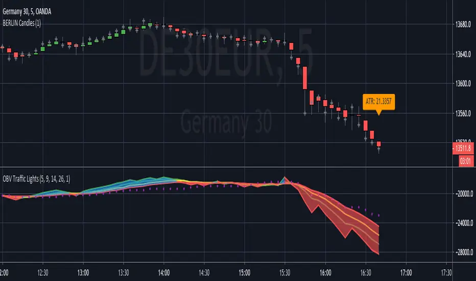 Thanks to Peter Whipp for the original idea of using the OBV with traffic light moving averages, as well as the default settings for them.