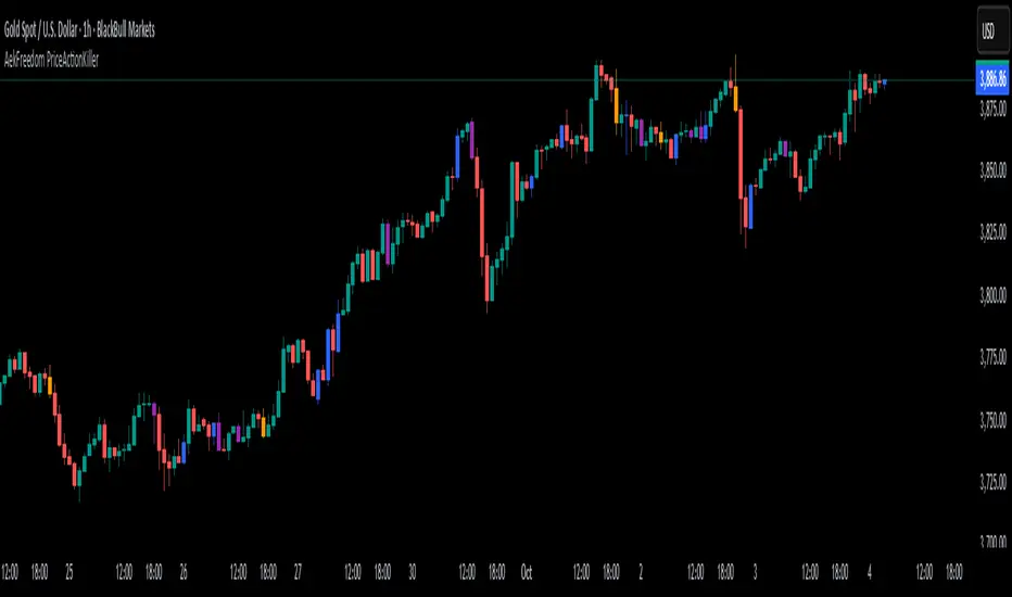 AekFreedom PriceActionKiller is an indicator designed to highlight and recolor candlesticks that form key Price Action patterns such as Engulfing and Outside Bars. It also includes a built-in alert system so you never miss important signals.