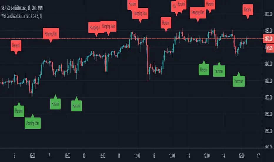 * Automatically displays only a specific set of candlestick patterns relevant to our Elliott Wave Indicator Strategy