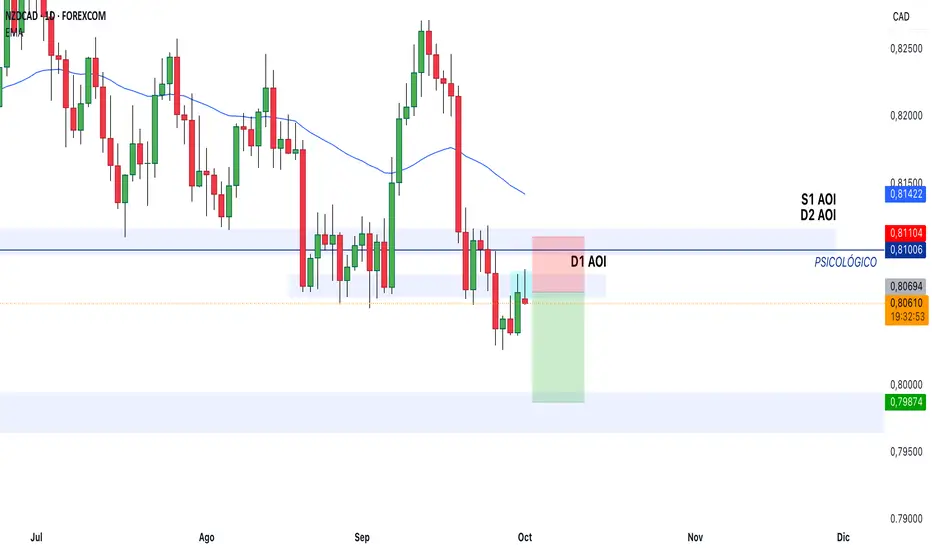 Price below the EMA → bearish trend.