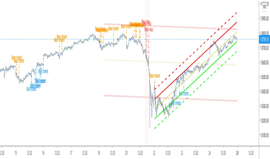 Green arrow = Bull Max , Place where the Maximum Upper channel boundary line have been crossed