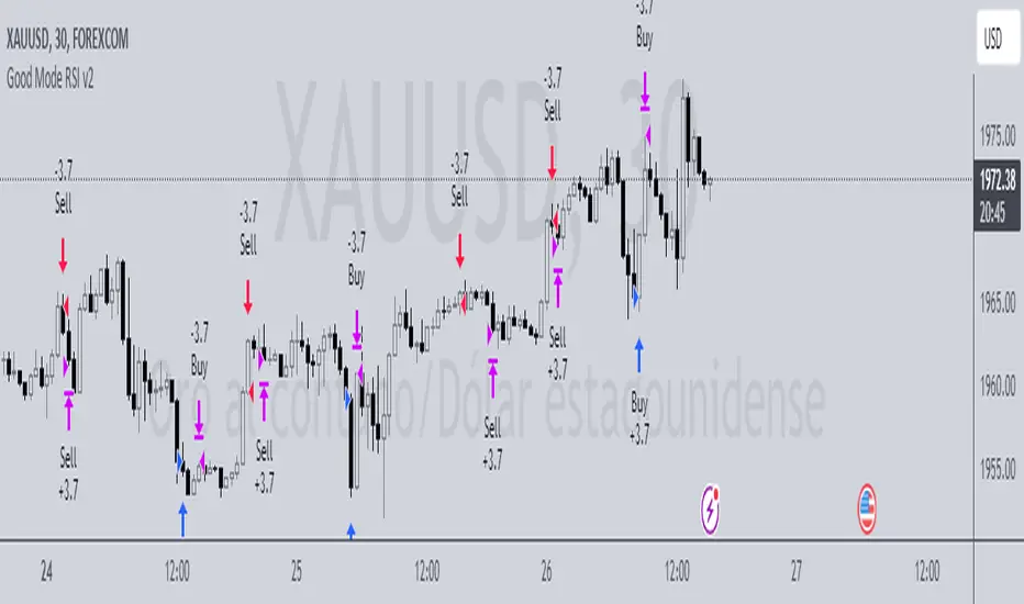 "Good Mode RSI v2" is a powerful trading strategy designed to provide informed trading decisions. This script utilizes the popular RSI (Relative Strength Index) indicator to identify potential buying and selling opportunities in the market. It goes beyond the traditional use of RSI by incorporating carefully selected parameters to enhance its effectiveness. The strategy stands out for its customized combination of RSI levels and stop-loss/take-profit thresholds, allowing for precise trade entries and exits while effectively managing risk.