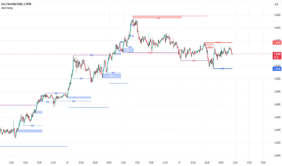 This indicator not only identifies usual parameters like Break of Structure (BOS), Change of Character (CHOCH), Inducement (IDM), Engineering Liquidity (Eng), and Order Blocks (OB), but also excels at uncovering these market events within counter-trend (internal trend).