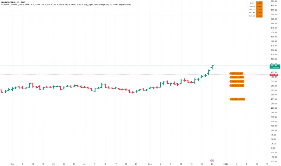 Clean Mode: By default, it shows only the Distance %, giving you a minimalist view of market extension.