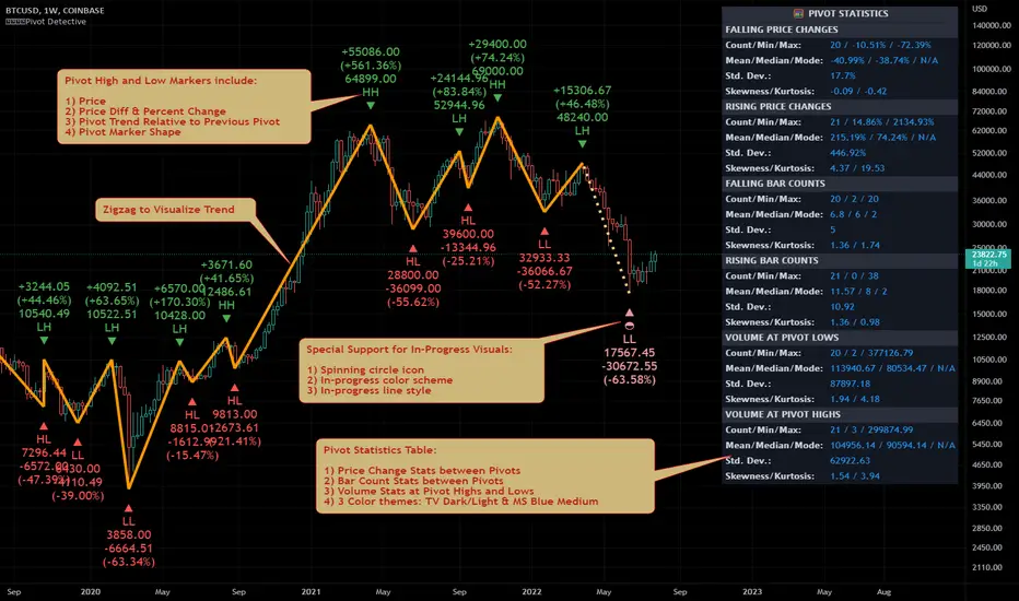 The Pivot Detective is an indicator that simply highlights the waves of the market by identifying the pivot highs and pivot lows by using shapes and zigzag lines.