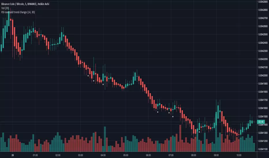 Simple script that will plot a circle indication on the chart when RSI returns above 30 from oversold position.