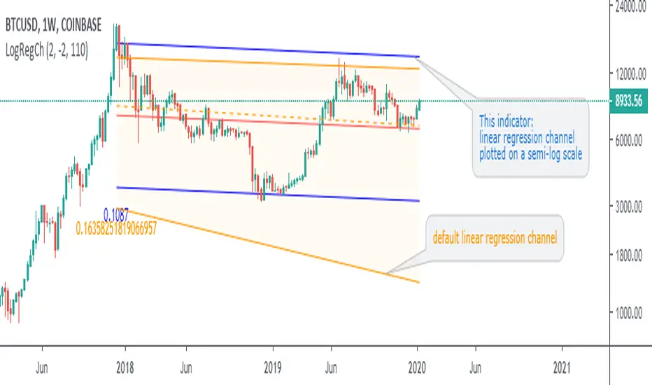 linear regression channel plotted on log-scale