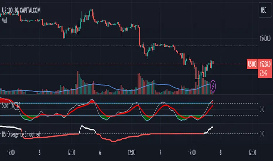 The "RSI Divergence Smoothed" is a custom technical indicator designed to highlight divergence between two RSI (Relative Strength Index) lines: a fast RSI and a slow RSI. The divergence is then visualized on the chart, assisting traders in recognizing potential market reversals and trend continuation.