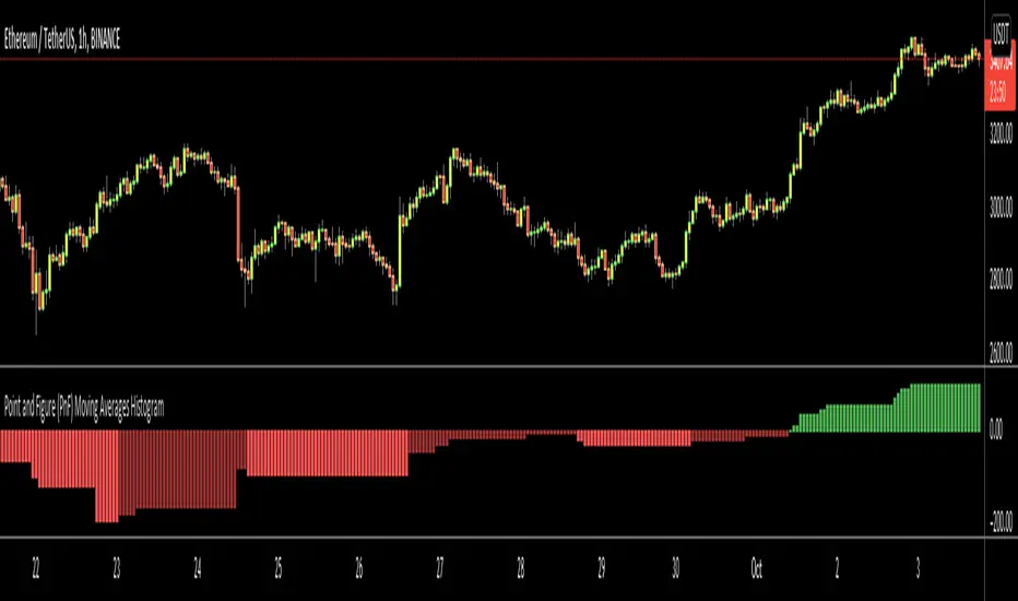 This is live and non-repainting Point and Figure Chart Moving Average Histogram tool. The script has it’s own P&F engine and not using integrated function of Trading View.