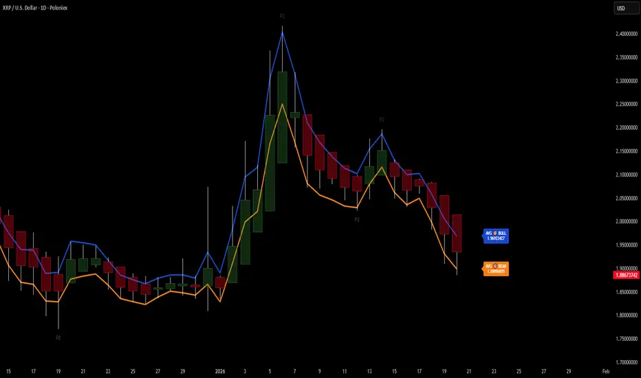 This script does not place trades or guarantee outcomes. It is a visual target framework that adapts as volatility and market structure change. For best clarity, publish charts with this script on a clean layout so the AVG lines and labels are easy to identify.