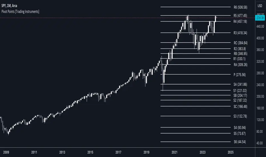 The "Fibonacci Pivot Points [Trading Instruments]" indicator is a comprehensive tool that combines the reliability of Fibonacci calculations with the flexibility of multiple pivot point types and timeframes. Its integration into TradingView makes it a valuable asset for traders looking to enhance their market analysis and decision-making process.