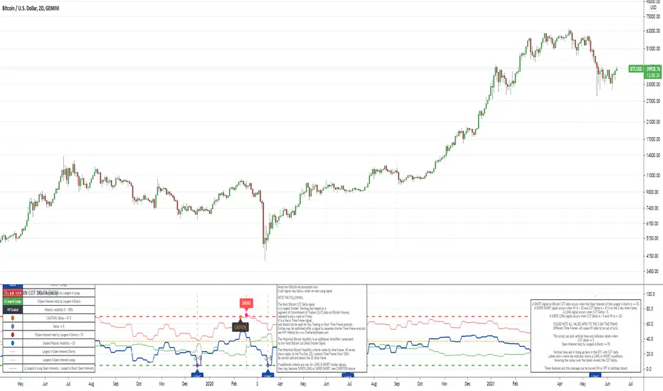 It is a Macro Timeframe signal, and should not be used for Day trading and Short Timeframe analysis, Entries may be optimised after a Hunt Bitcoin CoT [Commitment of Traders] Signal is generated by separate shorter Timeframe analysis.