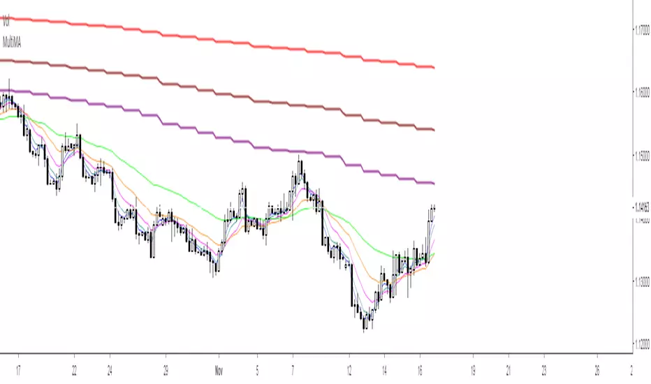 Suggested use: set 2 or 3 MA's to a higher timeframe (e.g. daily or weekly) to determine the overall trend and set the others to the current timeframe for intraday trading.