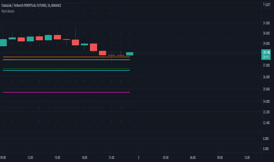 Daily,Weekly and Monthly Alarms with PlotsDaily: orange(BarOpen) and green(Pivot) lines