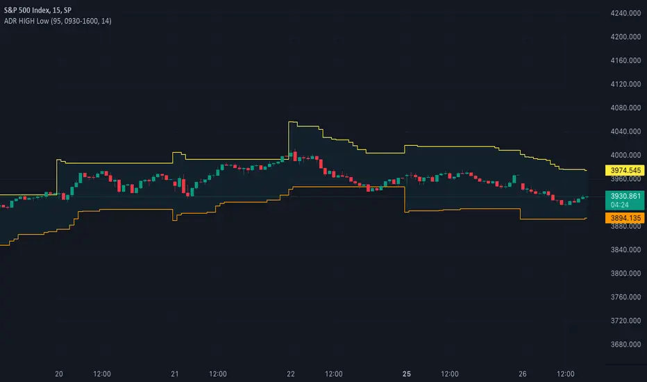 Show the High and low lines based on the average daily range of ticker