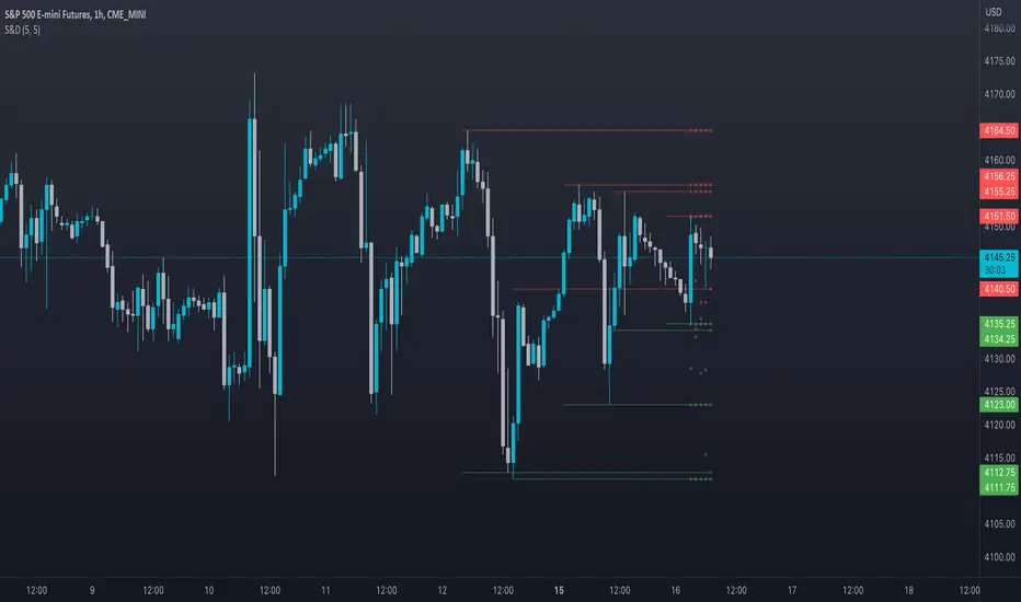 This is a "Supply and Demand" script designed to help traders spot potential levels of supply (resistance) and demand (support) in the market by identifying pivot points from past price action.