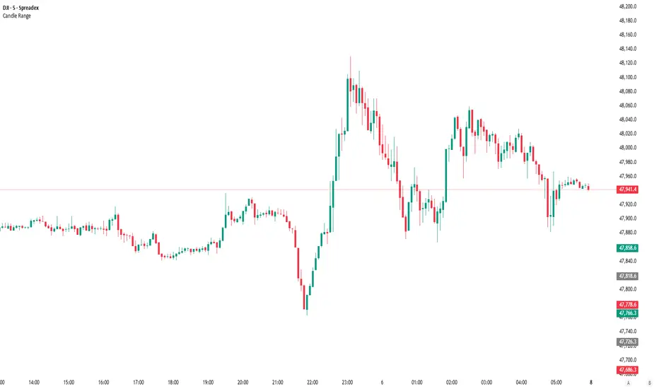 Displays the total range of each candle (high – low) in pips or ticks. The value appears in the status line and updates as you hover over candles. No bars, labels, or chart clutter — just a clean numeric view of candle volatility. Customize text color and decimal precision. Works for Forex, indices, commodities, and other markets.
