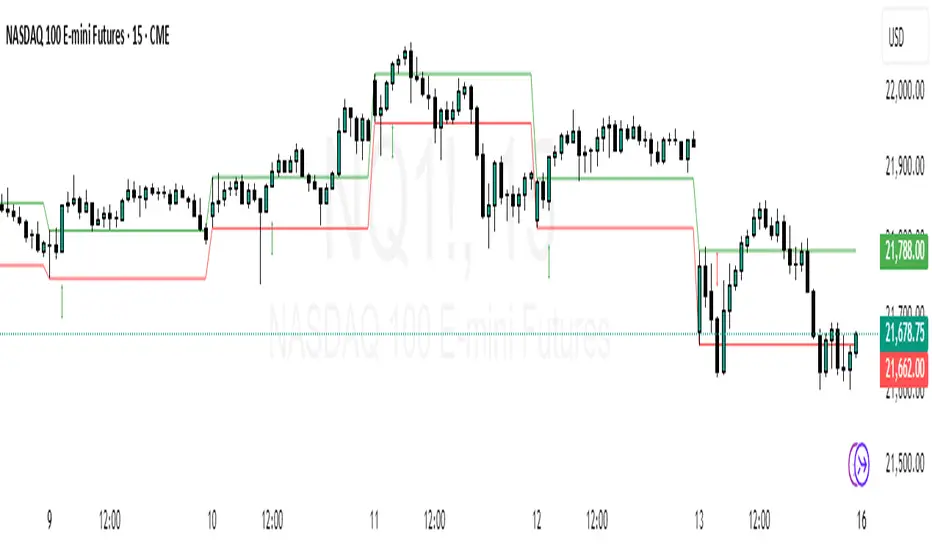 Opening Range: Automatically plots the high and low of the 1st 15min of the (NYSE session) (09:30–09:45 EST)