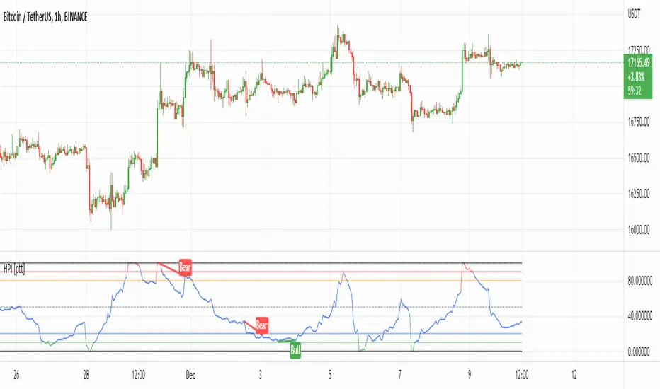 *add: Volume bars to the HPI index view, which is green if the HPI value greater than 0 (bullish move) and red if less than 0 (bearish move)