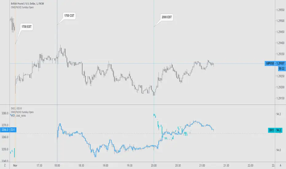 DIsplays a background color for CME futures open, forex market open, and ICE US futures open. Since there are varying opening hours for products offered, the opening hours are mainly for currencies, equity indexes, and precious metals.