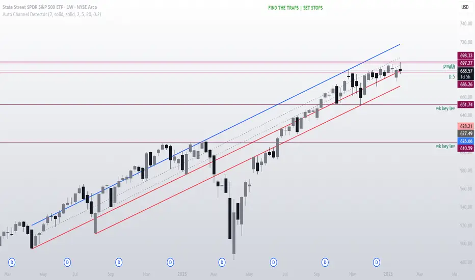 This midpoint is useful for evaluating mean reversion, momentum continuation, and reaction zones within the channel.