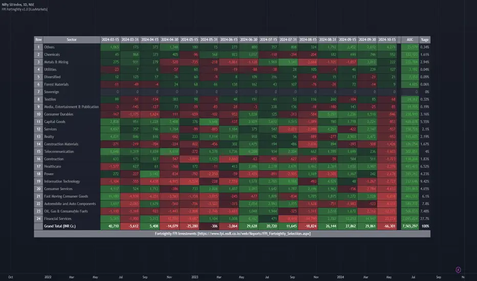 This indicator shows the FII/FPI fortnightly investments across various sectors for easy consumption.