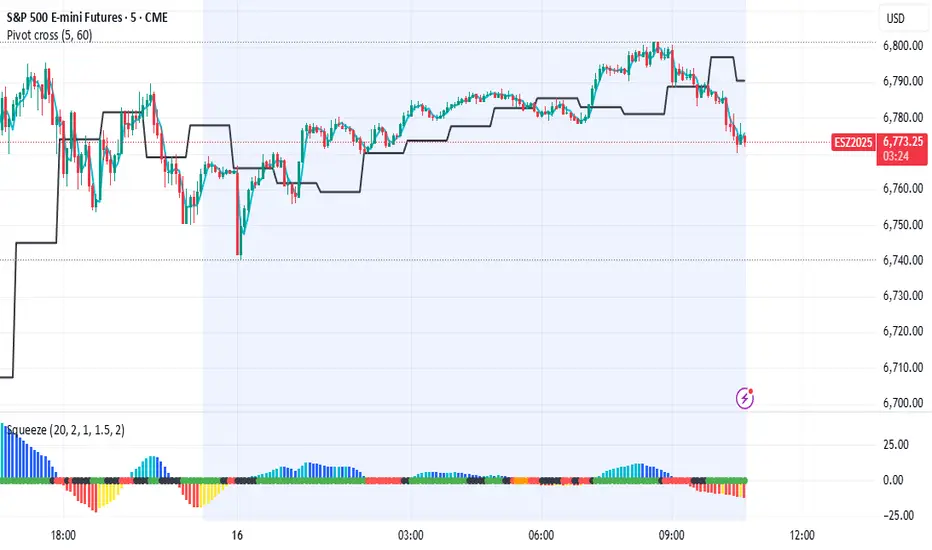 This script is simple way of seeing the trend using two pivots, one with lower time frame and other with higher timeframe. When the lower crosses above higher, its bullish, when lower crosses below higher pivot then bearish. Works on any timeframes for intraday and swing trading.