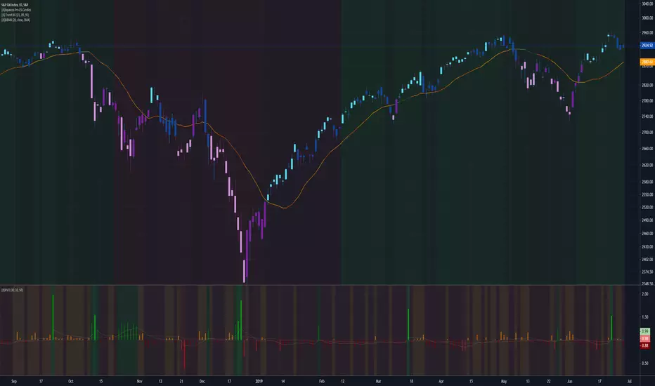 I haven't seen many scripts directed around volume, so I figured I'd add this as a basic tool for people to use. This is simply just a relative volume oscillator, I also added two moving averages to it in case you wanted to use them or even possible set a fast and slow MA for crossovers. Enjoy!