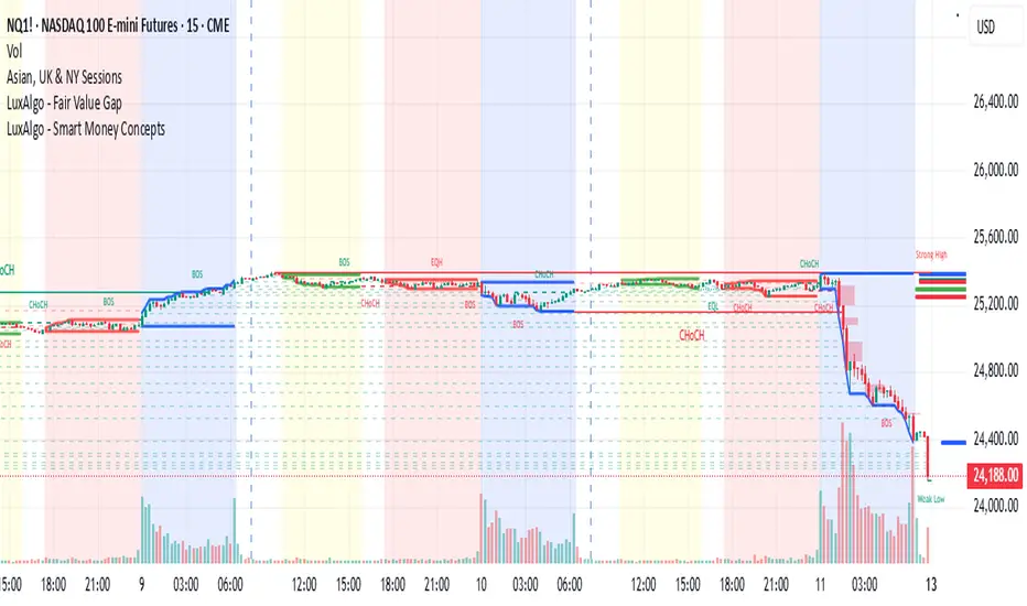 The Asian, UK & NY Sessions indicator automatically identifies and highlights the three major global trading sessions on your chart.