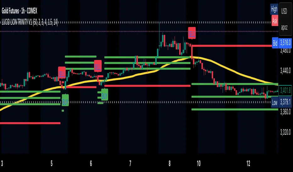 The LUCID LION TRINITY V1 indicator is provided strictly for educational and informational purposes only. It is not financial advice and should not be considered a recommendation to buy or sell any financial instrument.