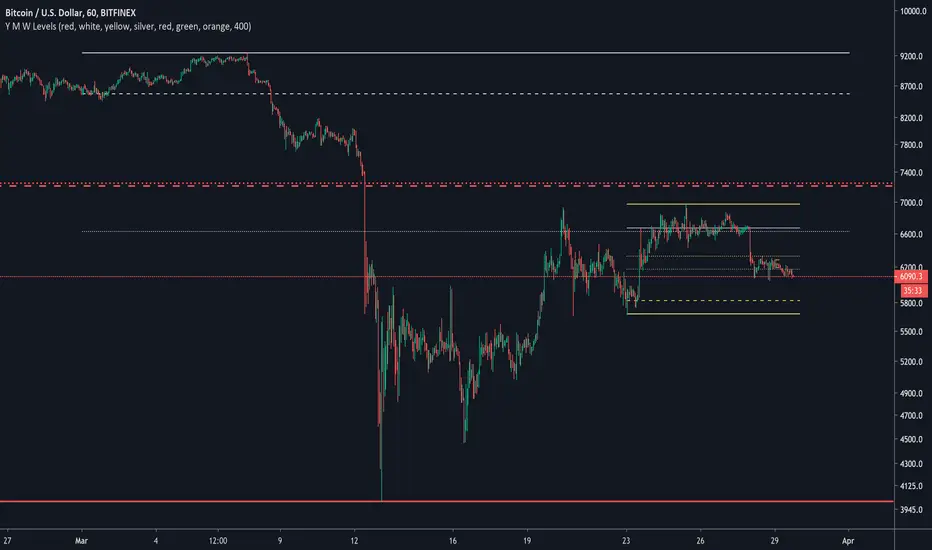 This script displays the Open, High, Low and Mid ranges for Yearly levels, Monthly levels, Weekly levels, and Monday range levels (useful support and resistance levels)