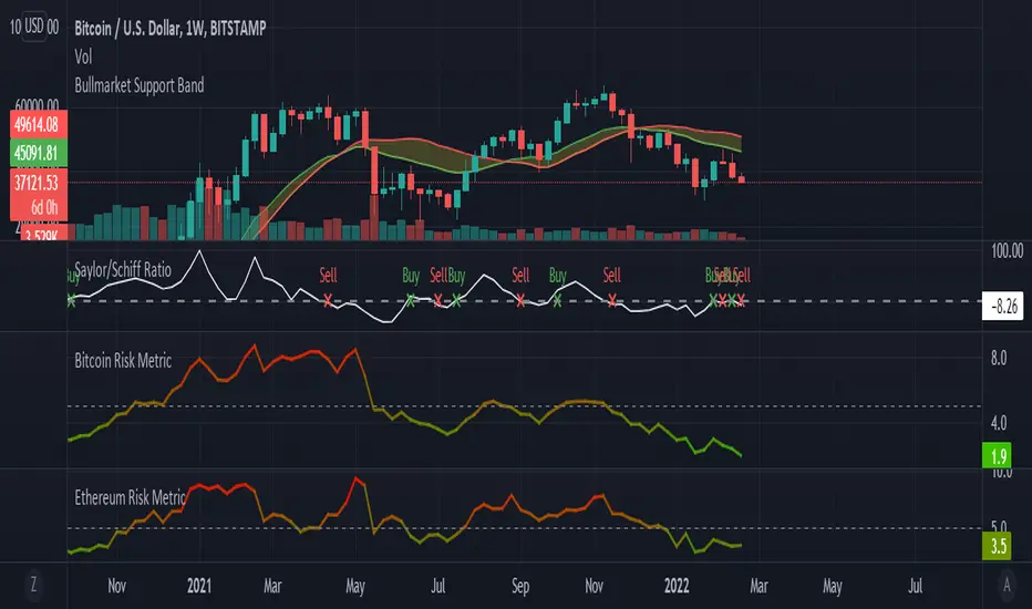 Hello all,With some feedback and support I have updated the Saylor to Schiff Ratio! The PineScript version is now updated to version 5 and will now display correctly on ALL timeframes. I have also added buy and sell alerts to the chart which are enabled by default but may be disabled in the options.
