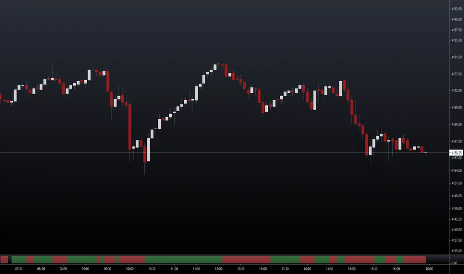 A simple script that places a bar at the bottom of the chart to indicate the direction of Heiken-Ashi candles - while still using traditional candles on the main chart. Try setting the bar on a higher timeframe to see the overall direction of the trend, while using traditional candles for entries/exits.