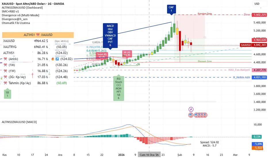This Pine Script indicator is a sophisticated Dashboard & Analysis Tool designed to monitor the price spread (arbitrage/premium) between the BIST Gold Certificate (ALTINS1) and the theoretical gram gold price derived from spot Gold (XAUUSD) and USD/TRY.