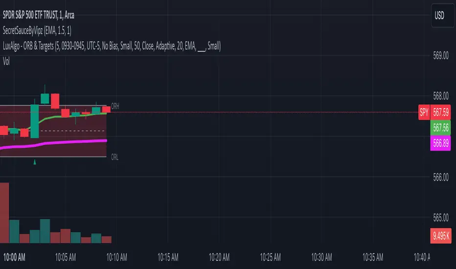 SecretSauceByVipz is a sophisticated trading indicator designed to help traders identify high-probability buy and sell signals by integrating multiple technical analysis tools. By combining Exponential Moving Averages (EMAs), Average True Range (ATR) buffer zones, Volume Weighted Average Price (VWAP), and Relative Strength Index (RSI) momentum confirmation, this indicator aims to reduce false signals and enhance trading decisions.